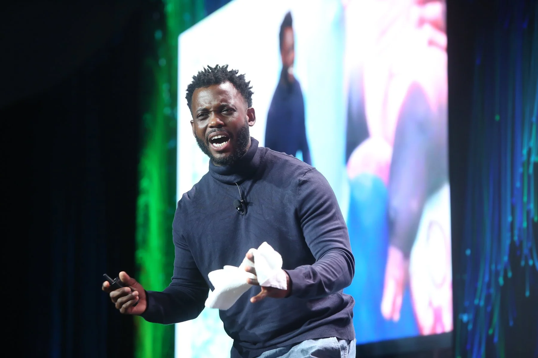 Alicia Keys speaking at a Blackberry Conference in New York City.